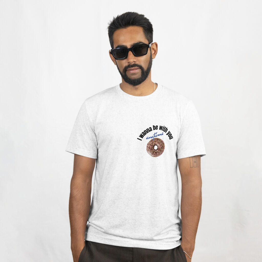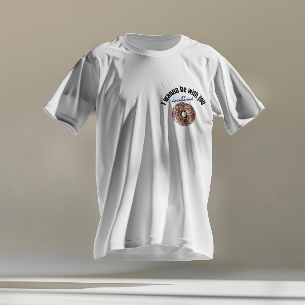 Doughnut topped with chocolate and color spray and message “I wanna be with you anytime” Give it to you who can’t keep donuts!